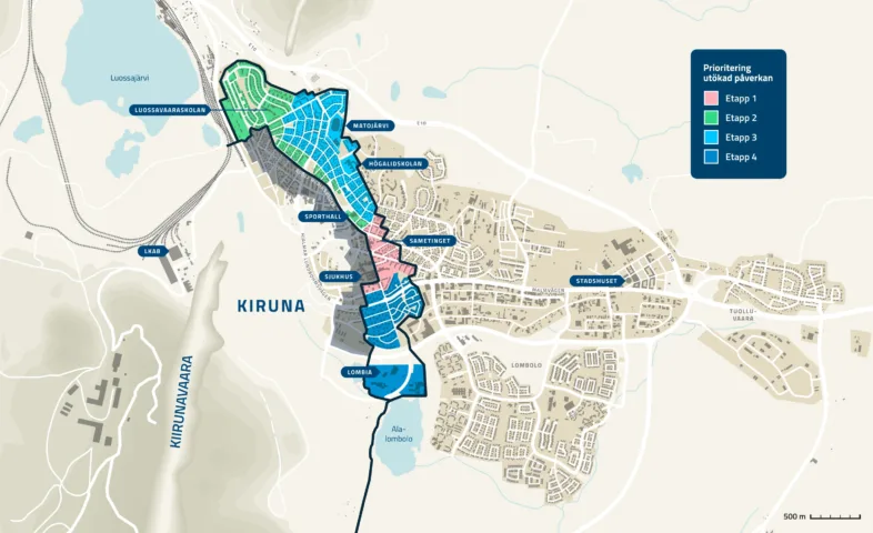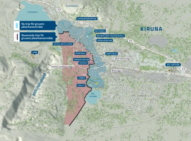 LKAB is now also presenting a phased plan and prioritization for the areas affected and due for acquisition. The first area is around the school Triangelskolan. Relocation is not expected within the next few years, and the timing will depend on access to buildable land.