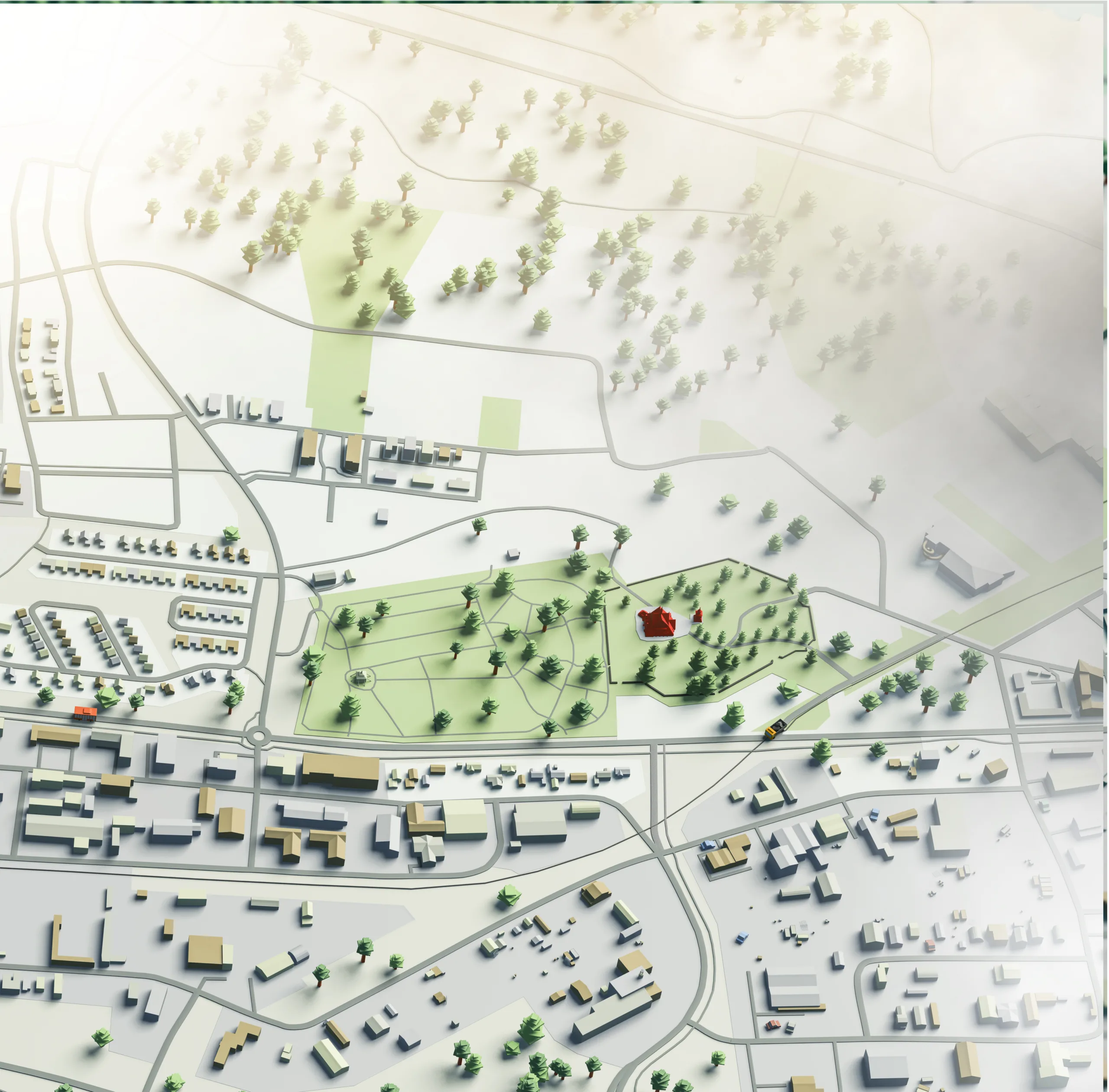 Kyrkans nya plats har valts med omsorg, efter dialog med kommun och länsstyrelse, och är mellan kyrkogården och nya Kiruna centrum.