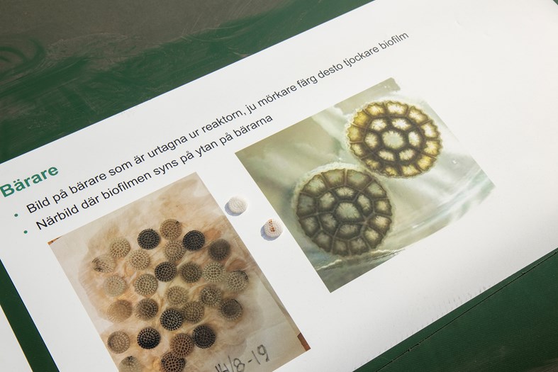 Det man nu testat är anaeroba, det vill säga syrefria, processer. Det här innebär att processvattnet, som först filtrerats på bland annat kalcium och större partiklar pumpas in i en reaktor.– I reaktorn har vi bärare täckta med en biofilm bestående av bakterier. Näringsämnen för bakterierna, i form av metanol och urinämnen, tillsätts och bakterierna behöver då bara en syrekälla till sin ämnesomsättning – i brist på löst syre i vattnet kommer de då söka upp de andra syrekällor som finns i vattnet, alltså nitrat och sulfat, och bryta ner det, förklarar Bertil Norén, forskningsingenjör.Sulfatet omvandlas därmed, helt på biologisk väg, till sulfid som kan separeras från processvattnet.