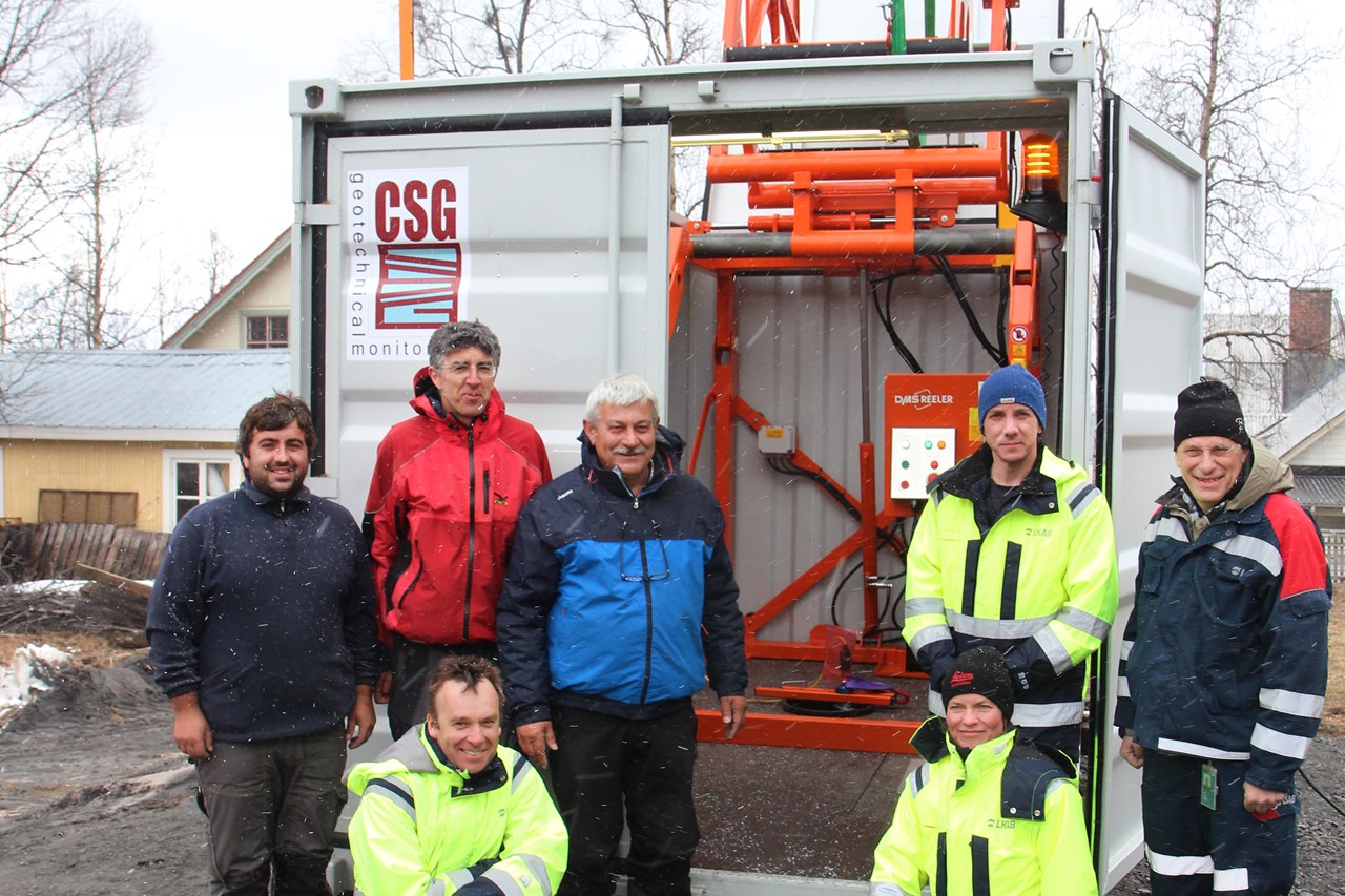 Europas första geomätare med 3D-teknik har installerats på Österlånggatan i Malmberget. En vit container täcker ett 50 meter djupt borrhål. I borrhålet har en lång flexibel lans med sensorer sänkts ned. Sensorerna kan mäta förändringar i berget i tre riktningar; på längden, på bredden och på djupet.