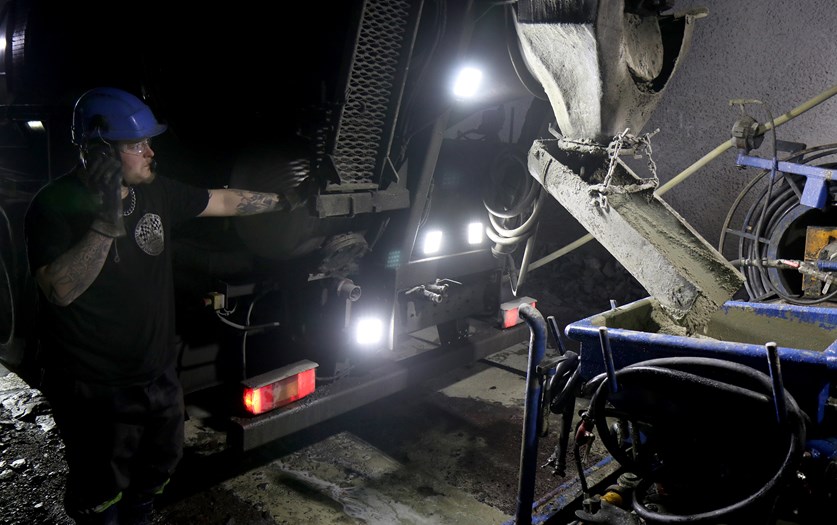 Sprutbilschauffören Emil Flygare kör åt Kauppis entreprenad. Han levererar betongblandningen och håller kontakt med Joel via radio under arbetet.– Vi har ett bra samspel mellan oss entreprenörer, LKAB Berg & Betong och LKAB. Jag har jobbat tio år med det här och är ju runt överallt, det är min vardag, jag tänker kanske inte så mycket på det där med framtiden. Fast nu när jag tänker efter… Jag har ju varit med och gjutit det nya stadshuset också!