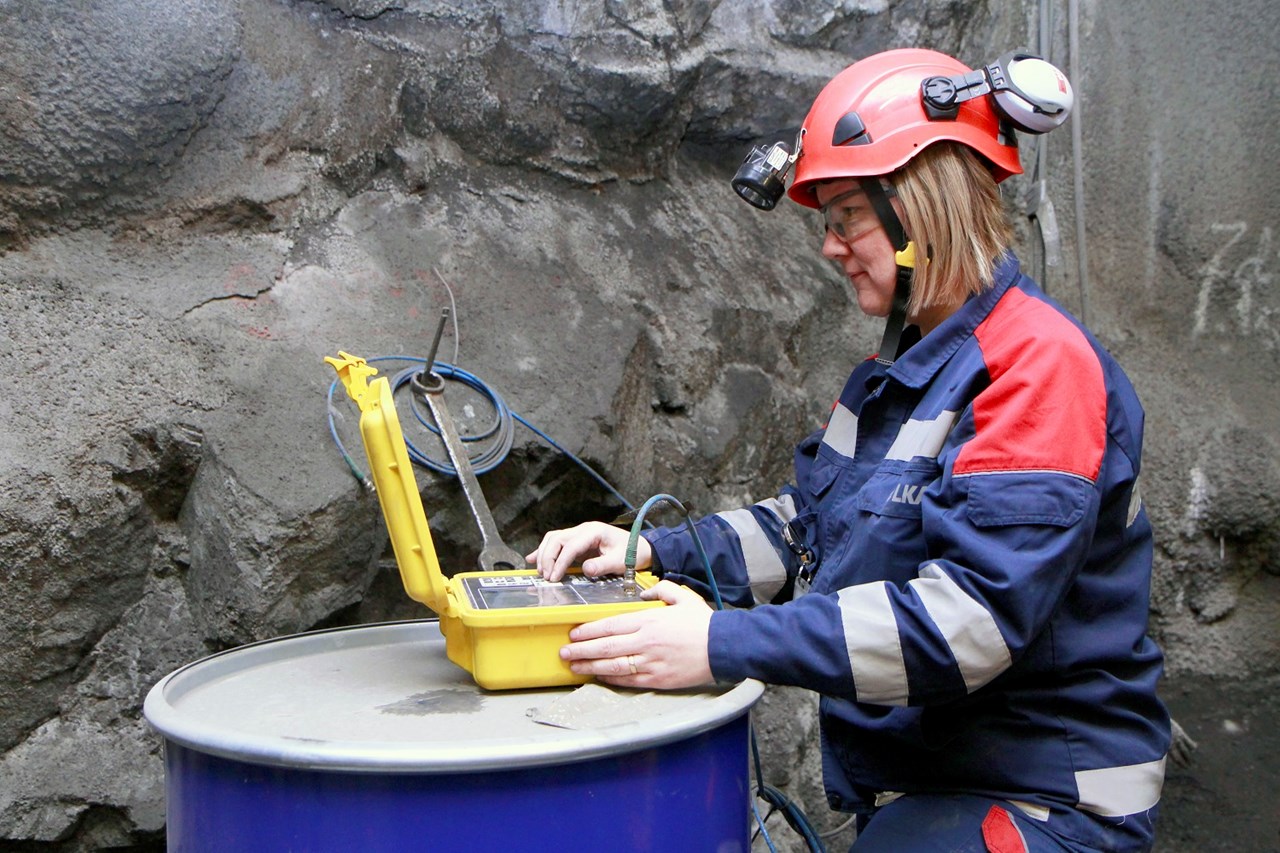 Med hjälp av elektriska impulser i hundra meter långa rör som går in i bergväggen mäter forskningsingenjör Karola Mäkitaavola och hennes kollegor på Gruvteknik Norra rörelser i liggväggen. De vill veta hur berget påverkas när malmen tas bort.