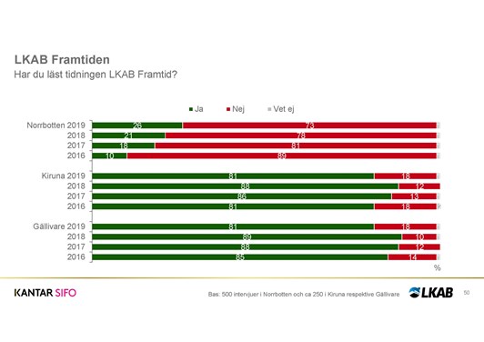 LKAB Framtid når ut till alla hushåll i Malmfälten och har idag en upplaga på cirka 20 000. De senaste fyra årens mätningar av Kantar Sifo visar på att mellan 80 – 90 procent av de tillfrågade i Malmfälten har läst tidningen. I Norrbotten som helhet är siffrorna betydligt lägre, men då är tidningens målgrupp just i Malmfälten där den i huvudsak ges ut.