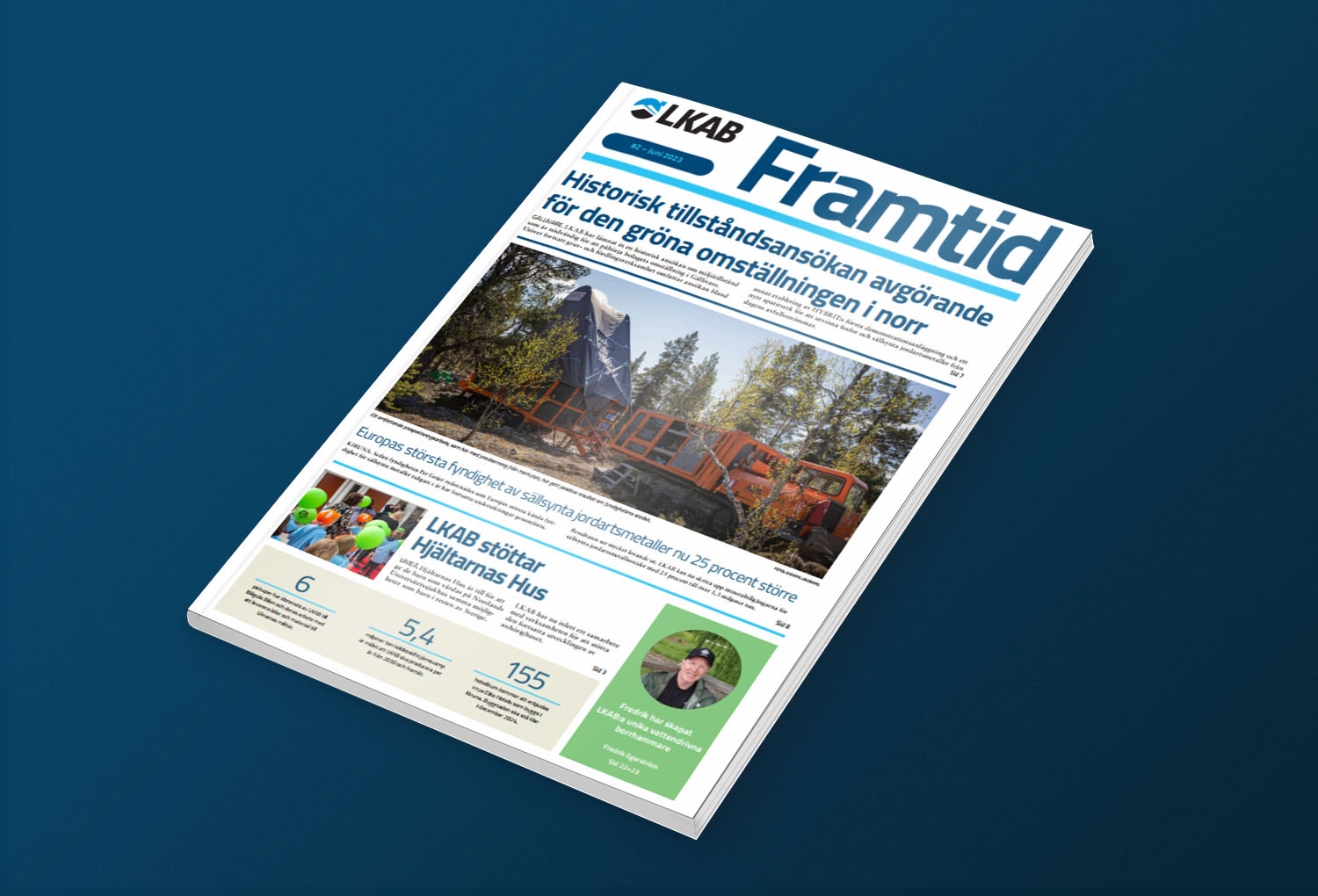 I det nya numret av LKAB Framtid kan du bland annat läsa om LKAB som har inlett ett samarbete med Hjältarnas Hus i Umeå. Undersökningar har visat att Europas största fyndighet av sällsynta jordartsmetaller, Per Geijer, är 25 procent större och nu har LKAB lämnat in ansökan om bearbetningskoncession. En miljötillståndsansökan för utökad brytning och förädling av järnmalm i Gällivare har lämnats in. Vi testar nya säkerhetslösningar i gruvan och arbetar för minskad damning i Svappavaara.