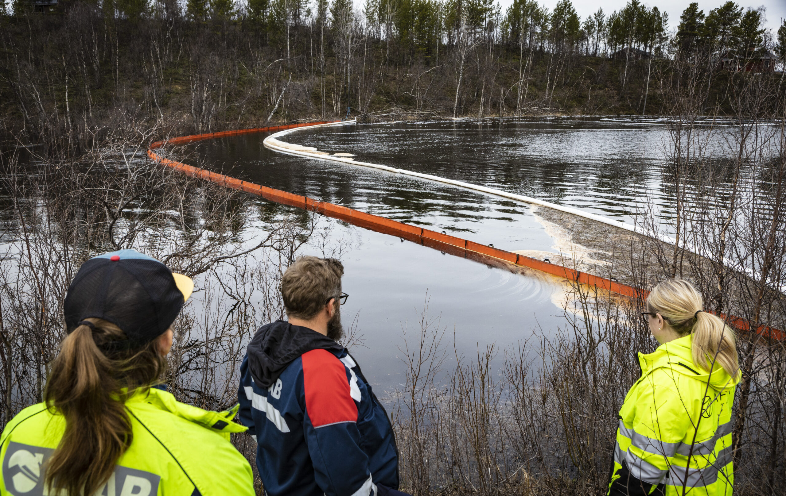 Eftersom vi vet att vi har en förorening från eldningsolja inne på LKAB:s industriområde och det nu under snösmältningen blir stora vattenflöden överallt, vidtar vi ett antal försiktighetsåtgärder för att vara på den säkra sidan. Därför lägger vi ut länsar i sjöar och vattendrag som har ett tillflöde från LKAB, även om det är osannolikt att det finns eldningsolja så långt bort från industriområdet.