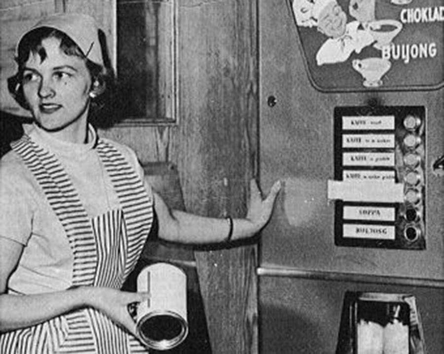 – Restaurangen låg på våning 11 och på våningen ovanför fanns bland annat ett bibliotek. Vi som arbetade i restaurangen tog bland annat emot matkuponger, plockade disk och torkade bord. Vi gick även runt med serveringsvagnar på de olika våningarna varje för- och eftermiddag. För 50 öre kunde man köpa kaffe och fikabröd.