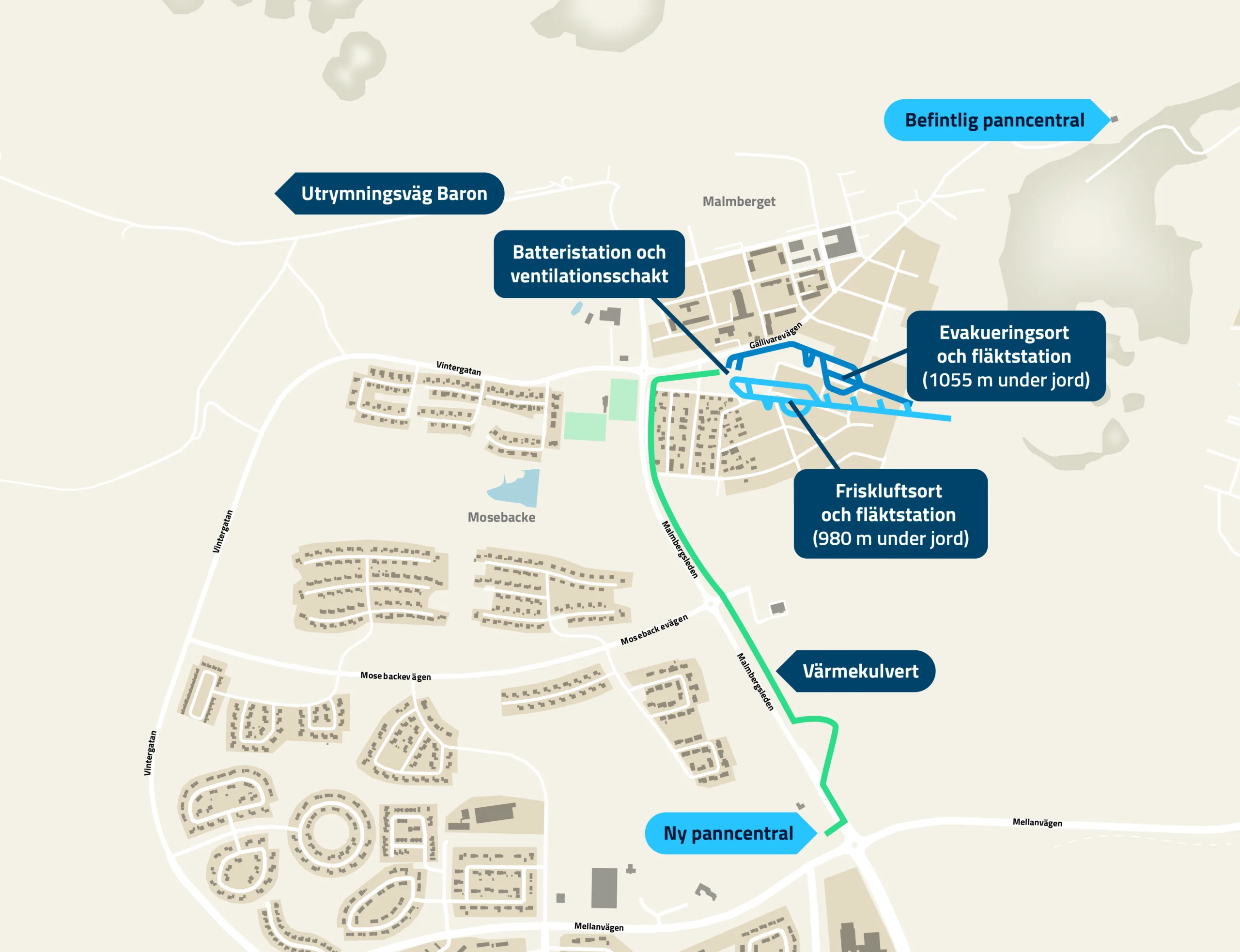 - Etapp 4 innebär anläggande av ny panncentral, batteristation samt fläktstation. Dessa kommer preliminärt anläggas år 2027–2029.