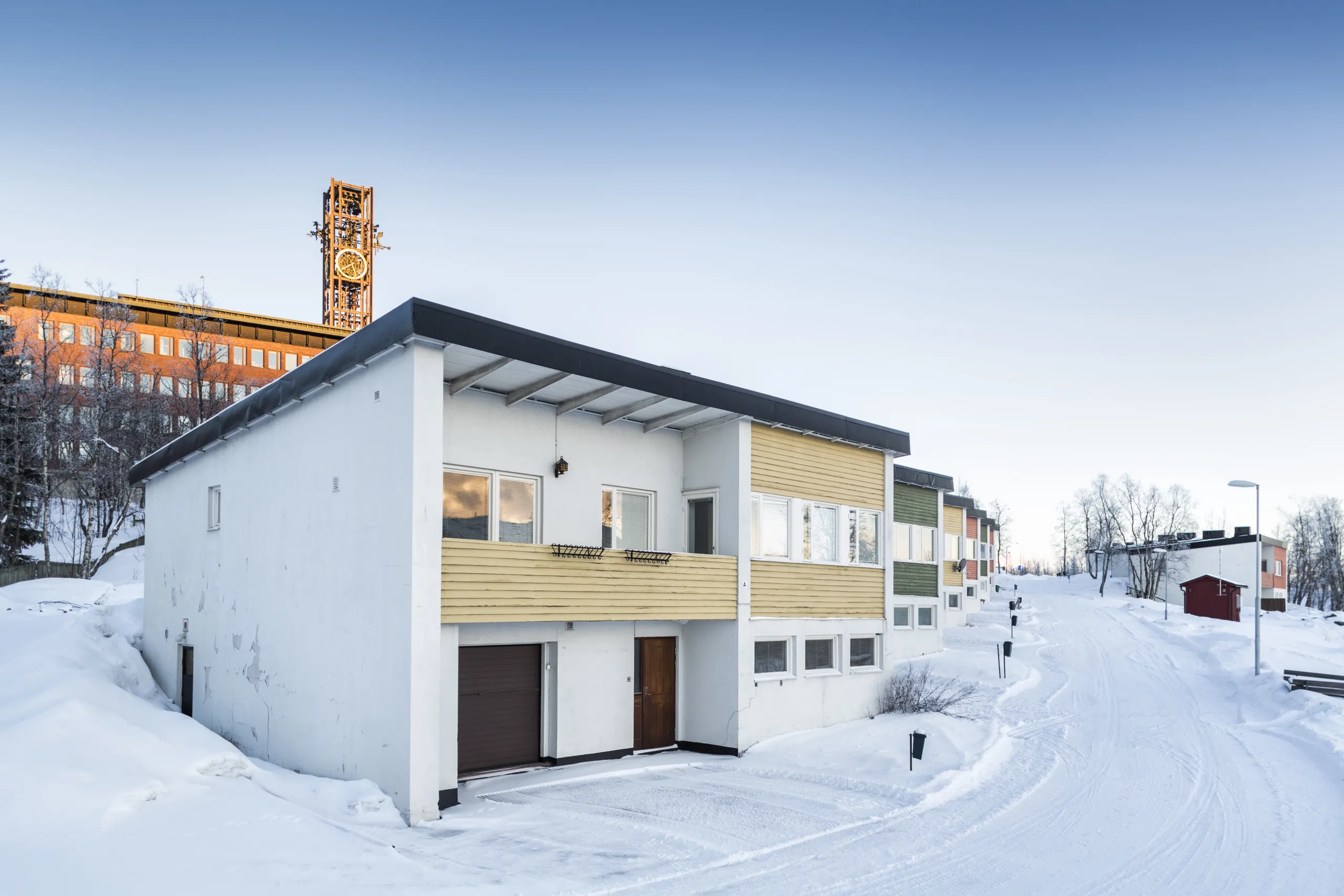 På Lingonstigen, strax nedanför Kirunas gamla stadshus, stod tio radhus som avvecklades under perioden mars till maj 2017.