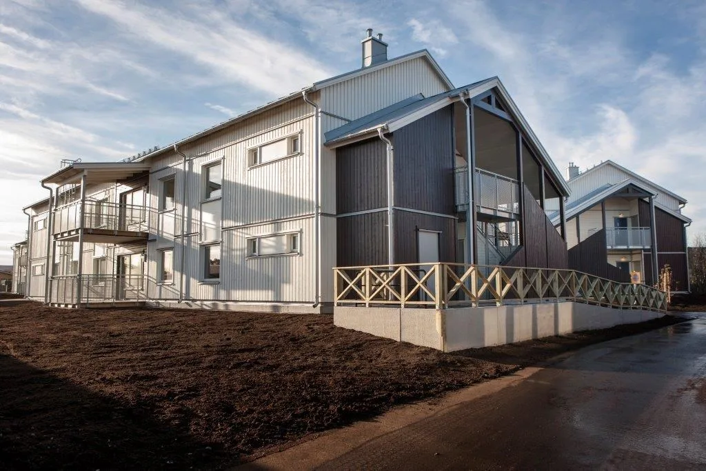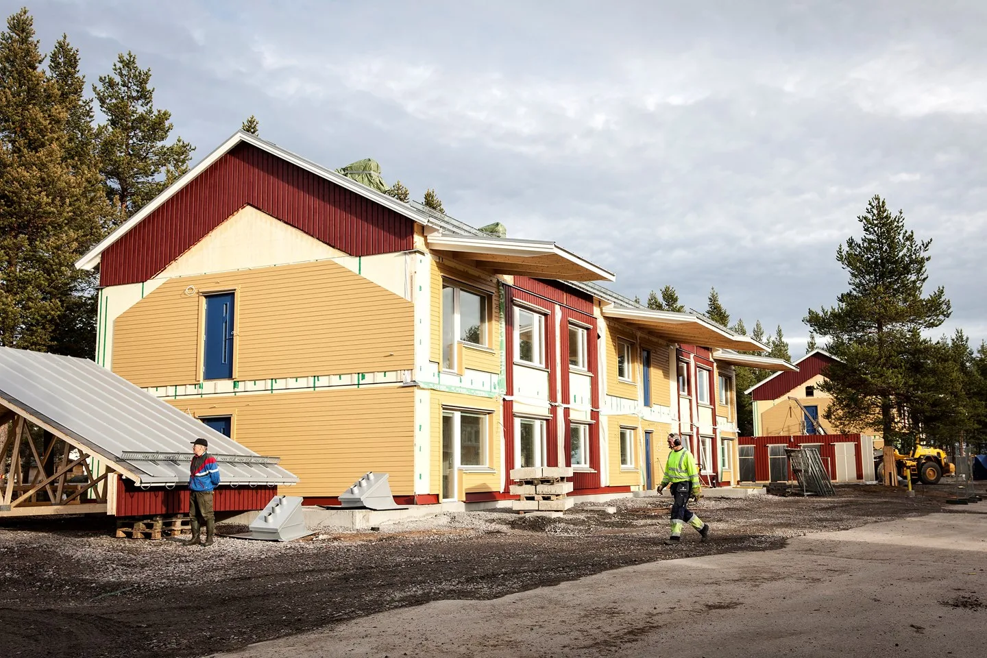 2014 stod 30 lägenheter på bostadsområdet Lombolo i Kiruna är klara. De fem trähusen har sex lägenheter i varje huskropp …